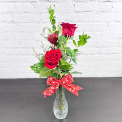 Price: $35.003 Red Roses in a Vase with Bear Grass Heart